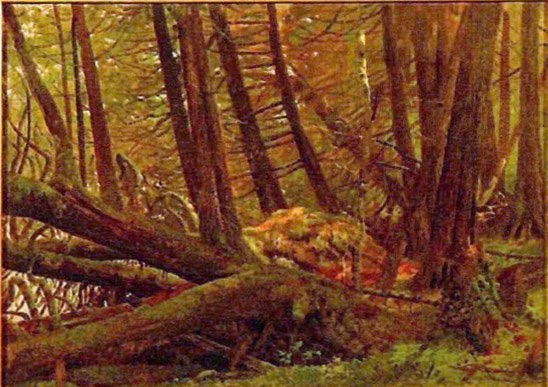Self-taught artist from Wellington, Ohio, Archibald Willard, catapulted to sudden and unexpected artistic fame in 1876, when his Spirit of 76, Yankee Doodle was exhibited at the Philadelphia Centennial Exhibition and quickly became an icon of American patriotism in the process. This work, by contrast, is a more intimate study of a woodland glen, probably painted for himself rather than on commission.